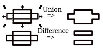 This is possible if you select e.g. two objects (see Basics), go to the menu ‘path’ and select union or difference: