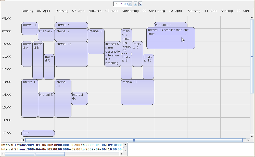 Of course it is not as feature reach as MigCalendar, but you can use it as a read only calendar component in you own apps – it is Open Source (Apache License 2), small (<30KB) and has only relative few dependencies (~1MB). It supports ‘conflicting’ events, i.e. if events would be at the same time.