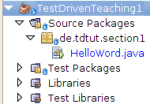 So look into the package de.tdtut.section1 to open the HelloWord class with double click: