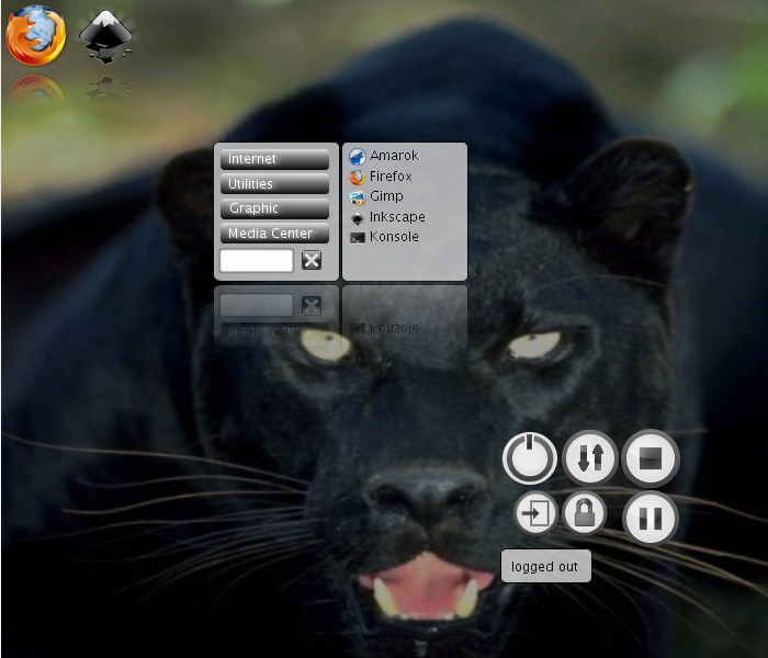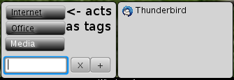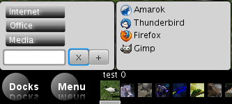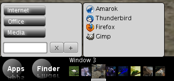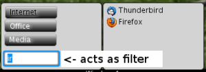 Another idea was that the normal application menu is somewhat complicated to use. Even in Vista/Win7 or Kde 4 you need to browse through the menu if you don’t know the name of the application, although I had to admit that I really like the search functionality in Vista/Win7 (BTW that was the only thing I liked about Vista). The point is that the menu items should be clickable and then filter the application list on the right side. So the menu items behave like tags: