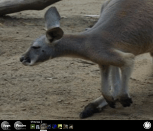 So now look at the applications’ desktop where each of the docks (two icon docks, the find-menu dock and the log-off dock) could be dragged around to suit your needs: